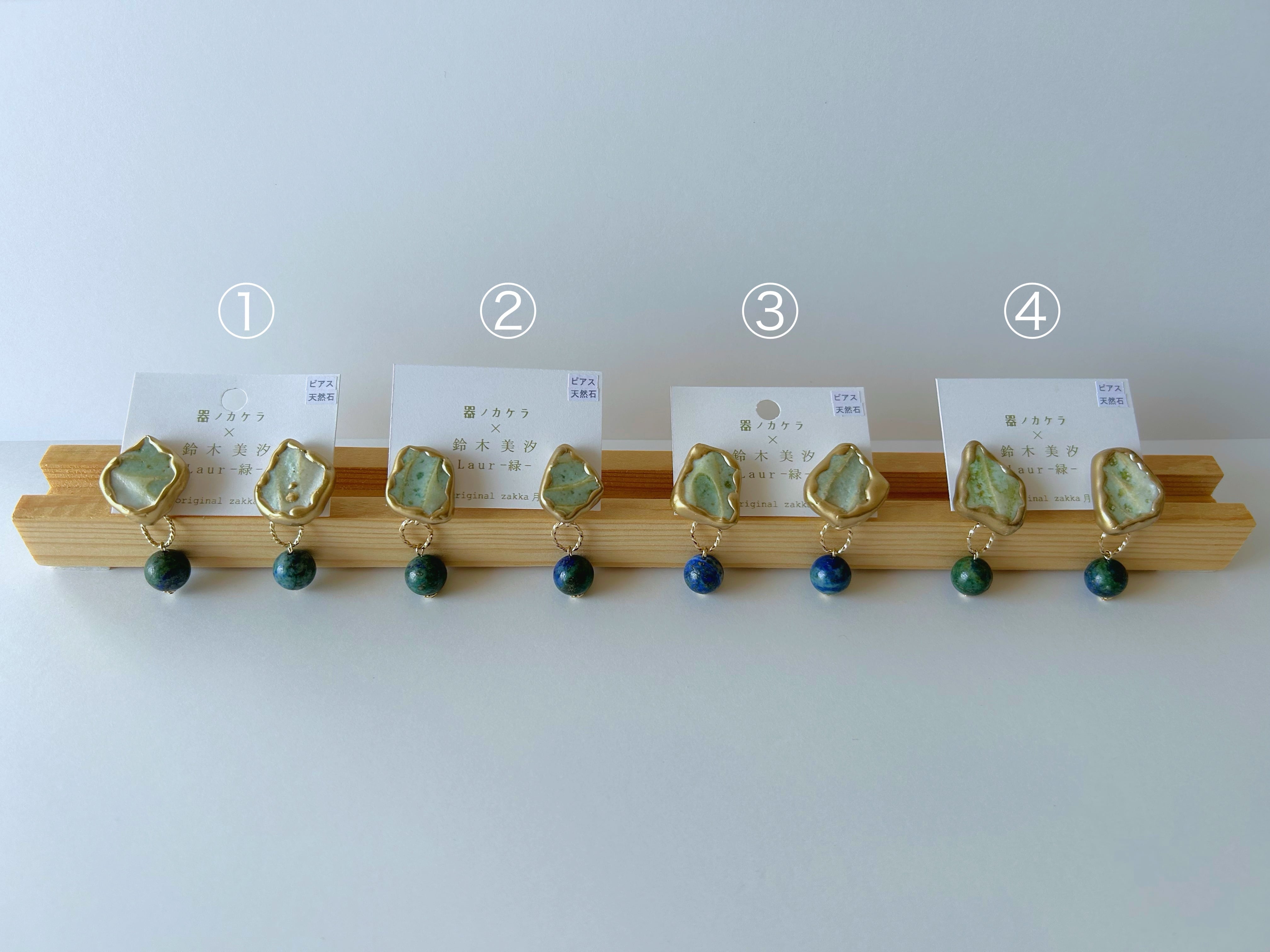 ピアス|器ノカケラ(鈴木美汐・ラウル)×天然石アズロマラカイト