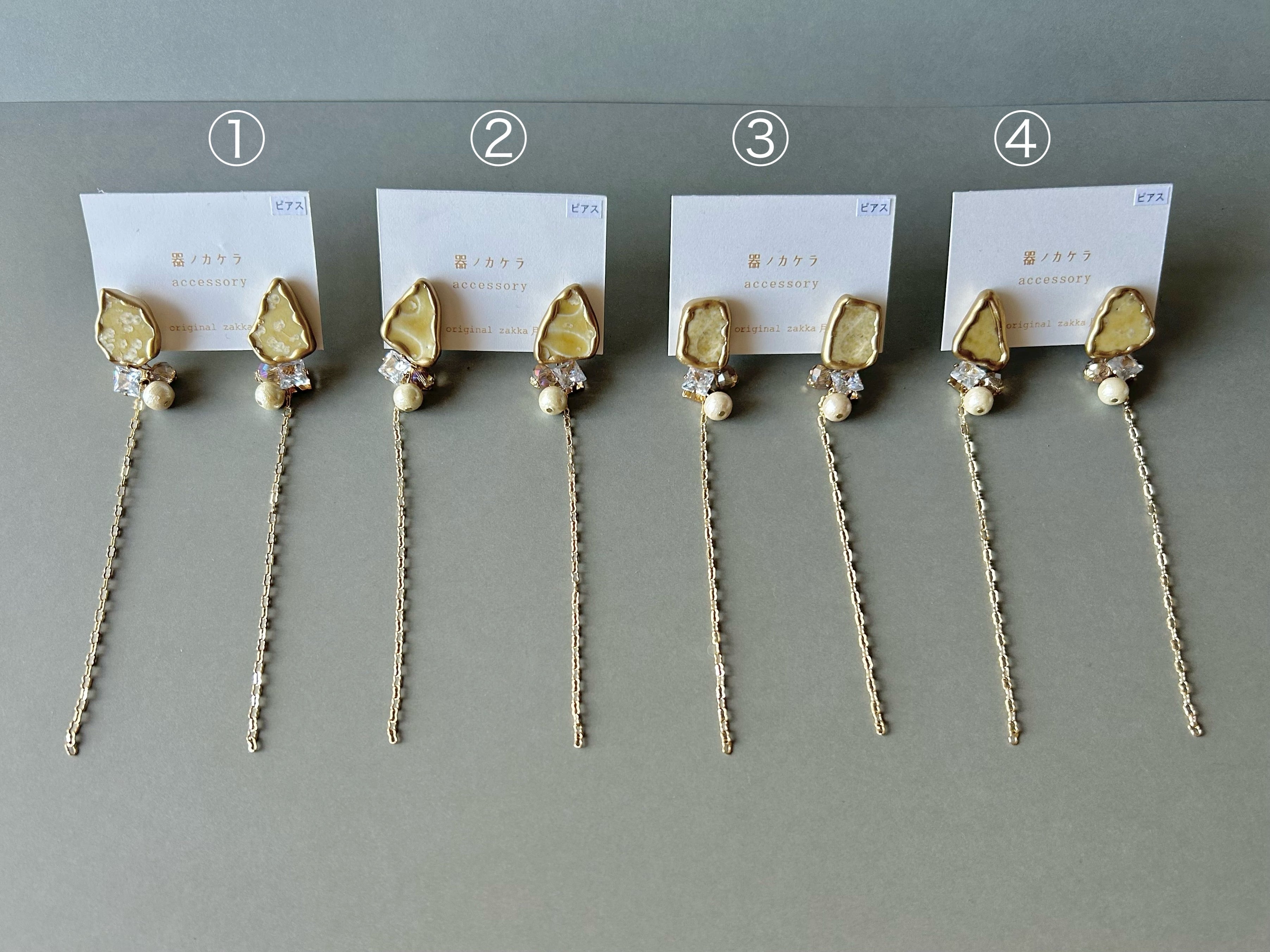 ピアス|器ノカケラ(中野明彦・結晶釉)×コットンパール/ガラス/チェーン