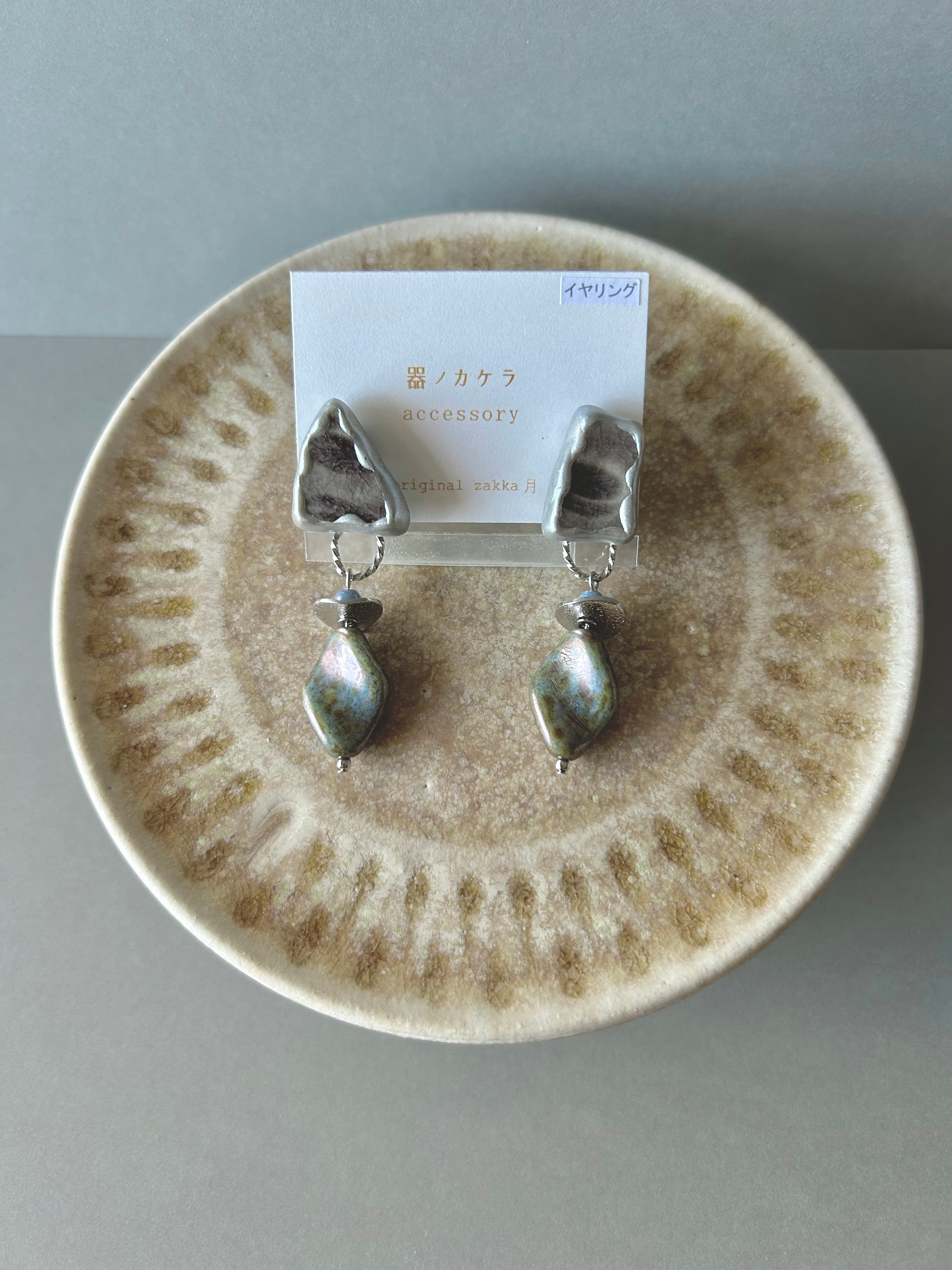 イヤリング|器ノカケラ(中野明彦・ネイビー釉)×チェコガラス
