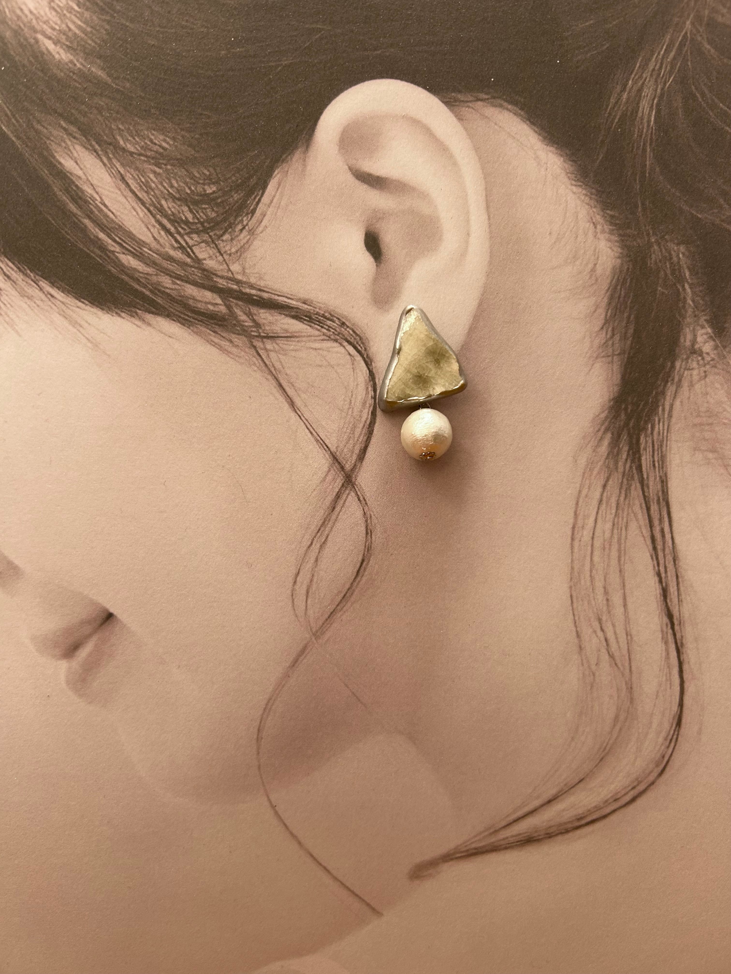 ピアス|器ノカケラ(中野明彦・モスグリーン釉)silver ×コットンパール 10㎜