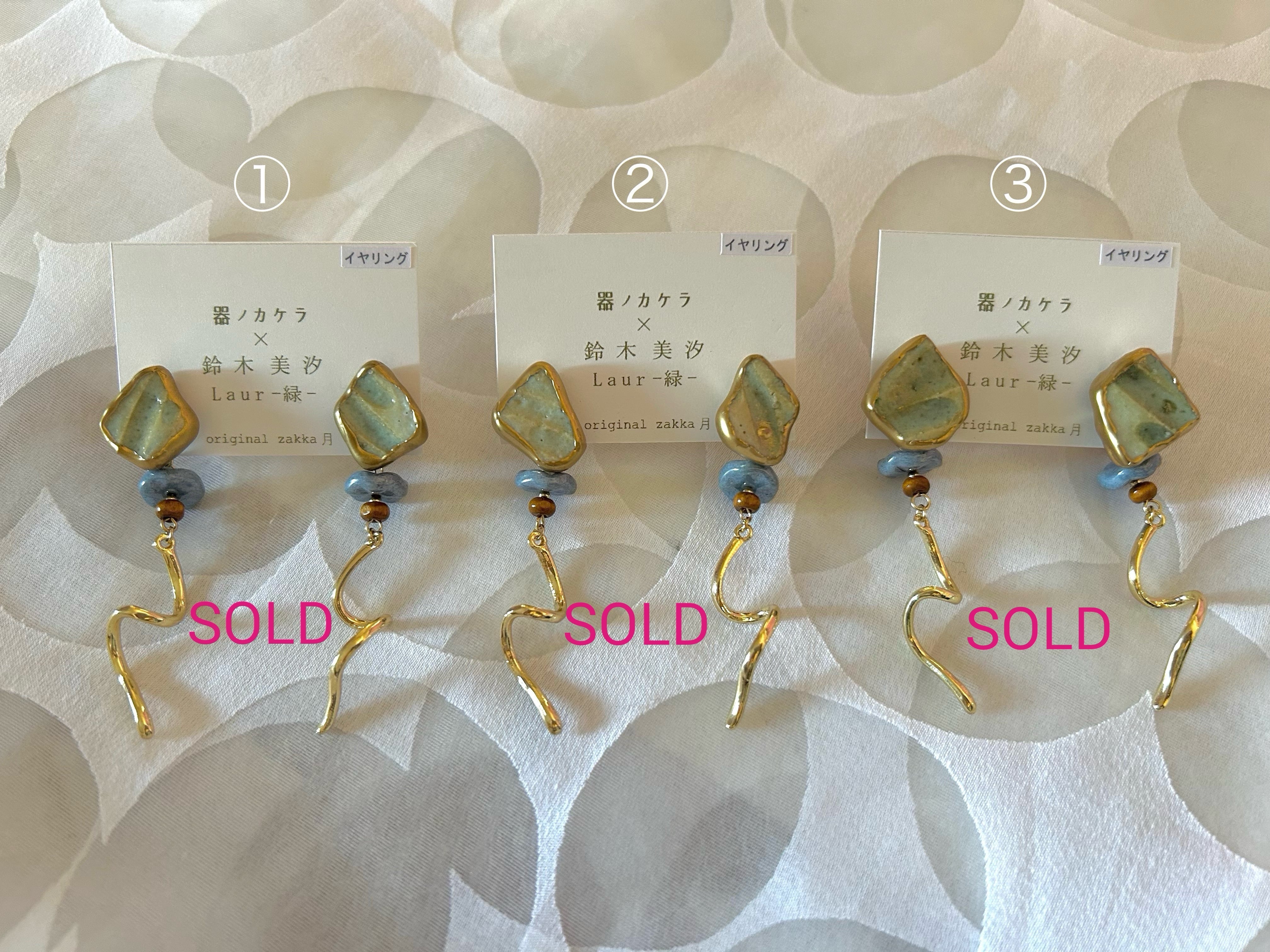 【イヤリング】器ノカケラ(鈴木美汐-Laur-)+チェコガラス、wood、メタルバー